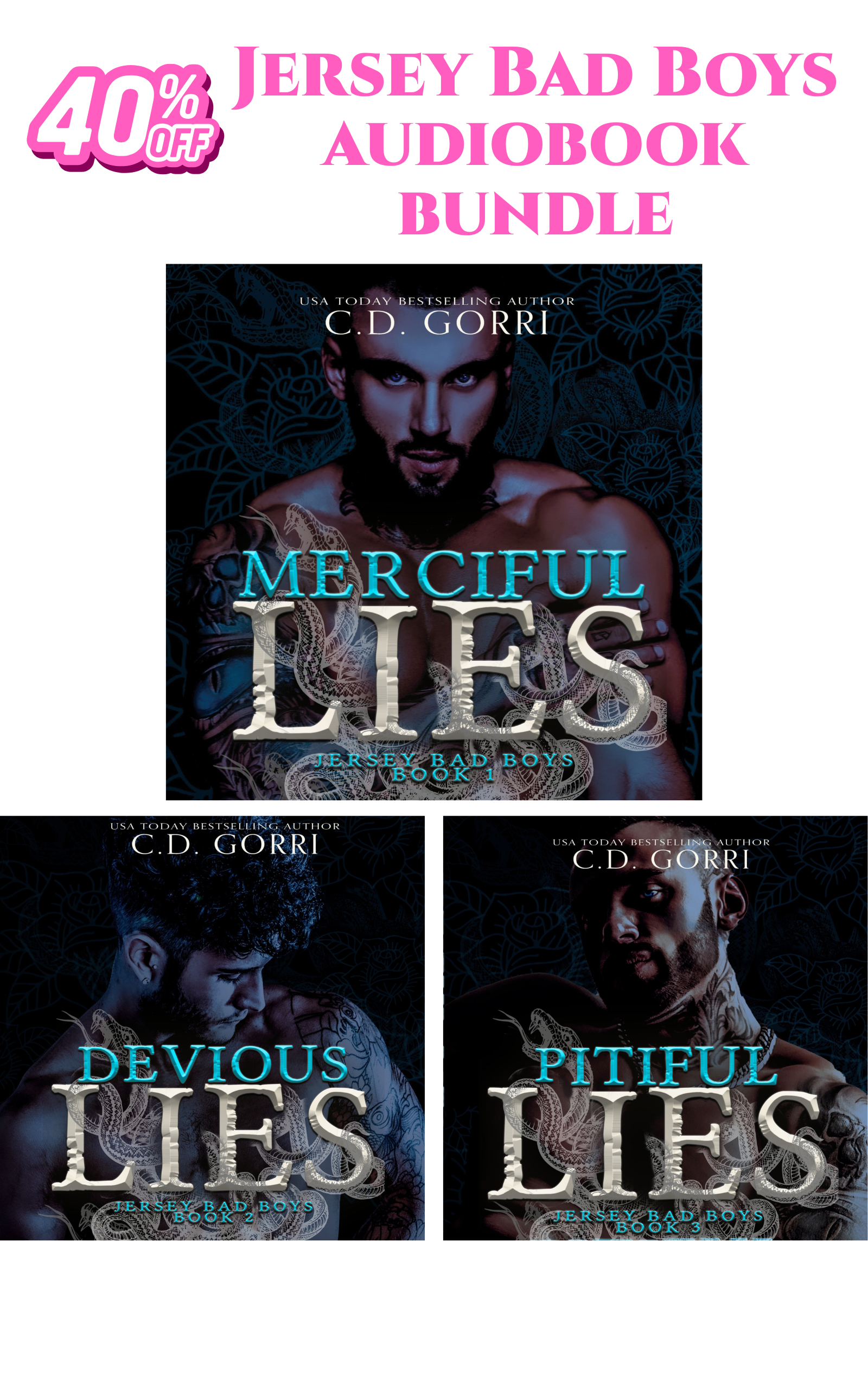 Jersey Bad Boys Audiobook Bundle There’s no room for mercy in a kingdom built on lies. Beneath the veneer of polite society exists a criminal organization known for its utter lack of mercy. They call themselves the Vipers. The men who belong to this syndicate are cruel, cunning, and unforgiving. Ruled by a king, this band of brothers knows no boundaries and takes no prisoners. To cross them is to sign your own death certificate. But even serpents have weaknesses.And sometimes that weakness is just a flower. Included:Merciful LiesDevious LiesPitiful Lies Popular Tropes Dark Romance, Contemporary Romance, Possessive Alpha Male, Forced Proximity, Secret Baby, Tricked Into Marriage, Morally Gray MMC, Plus Size Heroine, Sweet For Her, Touch Her & D*e. Series Reviews ⭐⭐⭐⭐⭐ “The author has outdone herself! Fast paced, gritty, a little grey (not too dark but a hint), but the MMC is so smushy for the MFC!! A not so great arrangement brings them together but he totally makes up for it! Such a great read with excellent spice and plot!” -Bookbub Reviewer⭐⭐⭐⭐⭐”This Book 1 in The Jersey Bad Boys Series has an amazing story, well-crafted world and intense Characters. These wonderful characters have unique personalities, detailed histories and believable interactions. I love to hate her brother and how he treated her, I loved her strength when she showed up at the MC and I loved his strentgh and his protective side. This story had obsession, trading a sister for his debts, passion, love, secret pregnancy, danger, twists, turns, family, MC violence, misunderstandings, Romance, Love and a worked for HEA. This is a must read new series from one of my favorite authors, C. D. Gorri. I cannot wait for the next book.” -Bookbub Reviewer